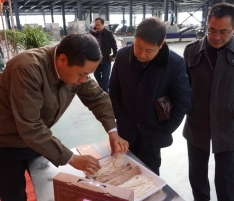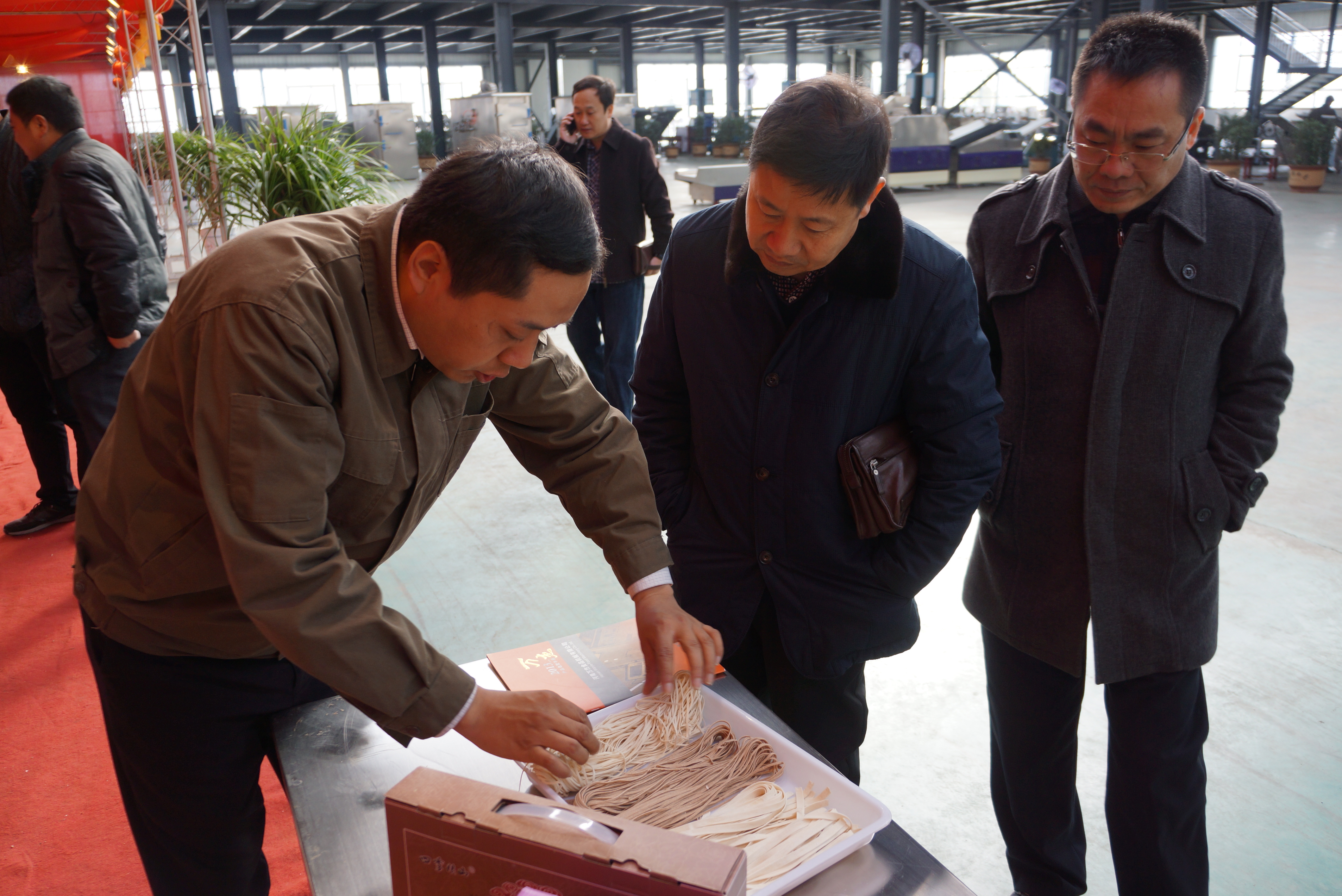 董事長王曉杰向河南省技術產權交易所副總裁陸永保(中)介紹我公司面機產品特點